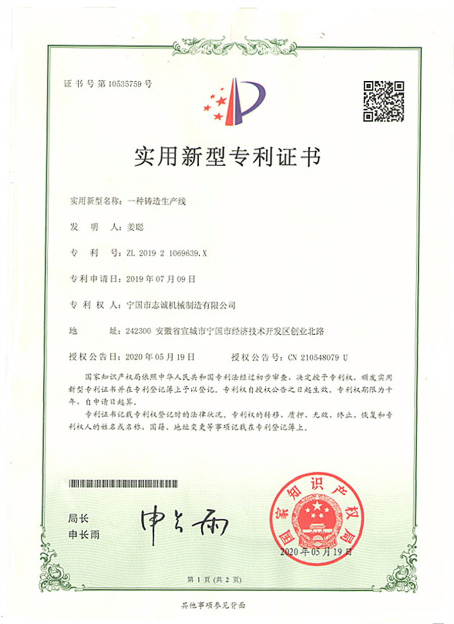 寧國市志誠機械制造有限公司位于安徽省寧國經濟技術開發(fā)區(qū)創(chuàng)業(yè)北路,成立于2008年5月,占地50000平米,是一家集鑄造自動化設備、熱處理自動化設備、鑄造模具研發(fā)、制造于一體的民營科技企業(yè)。2009年公司加入中國鑄造協(xié)會耐磨鑄件分會,被耐磨鑄件分會指定為“耐磨鑄件生產設備研發(fā)基地”。公司專業(yè)從事鐵模覆砂自動化鑄造生產線、熱處理自動化生產線、澆注機、鑄造模具、環(huán)保除塵及煙氣凈化設備的研發(fā)、生產與銷售.